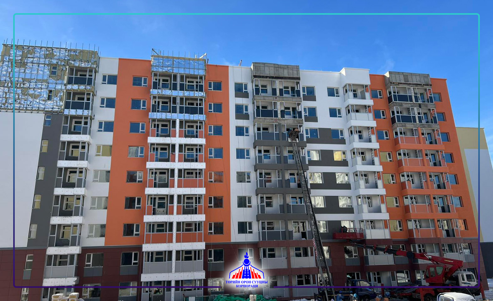 Хан-Уул дүүргийн 21 дүгээр хорооны нутаг дэвсгэрт 17.19 га газарт БНСУ-ын Засгийн газрын 266 сая 885 мянган ам.долларын хөнгөлөлттэй зээлийн санхүүжилтээр хэрэгжиж буй “Солонго-1” /MON 18/, Солонго-2” /MON19/ орлогод нийцсэн орон сууцны хороолол барих төслийн барилга угсралтын ажил 60 хувьтай үргэлжилж байна. Төслийн барилга угсралтын ажил 2024 оны гуравдугаар сард эхэлсэн бөгөөд 2027 онд бүрэн дуусах юм. Эхний ээлжийн 2042 айлын 27 блок барилгыг 2026 оны III улиралд ашиглалтад оруулахаар төлөвлөн ажиллаж байна.